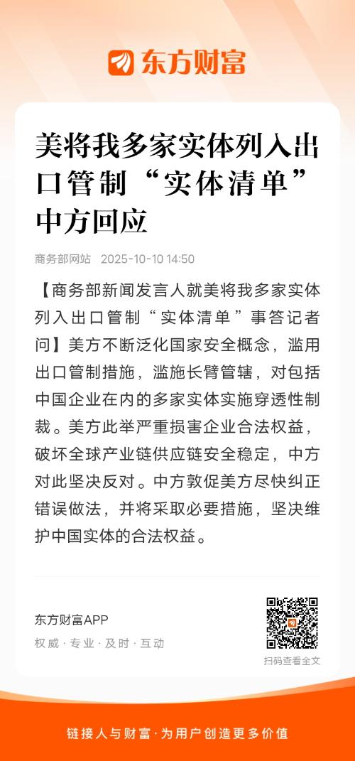 有记者问:美东时间2025年10月8日,美商务部宣布将多家中国实体列入出口管制“实体清单”,请问中方对此有何评论?