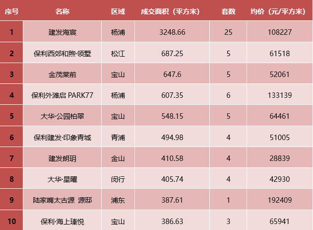 上海新建商品住宅成交TOP10(2025.10.1 -2025.10.8)