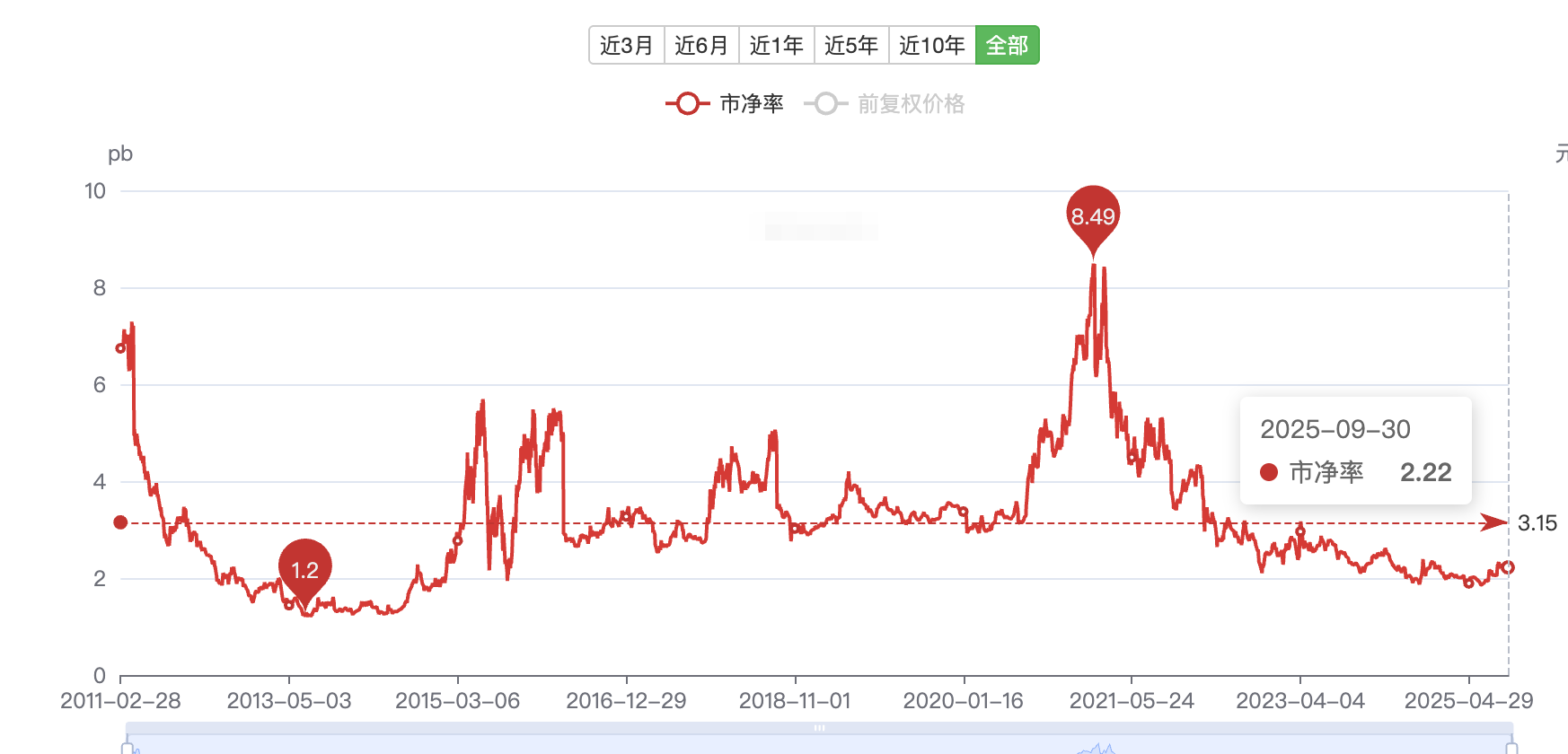 当然实控人敢于这个位置增持是因为股价跌的非常透了,这个股票市净率跌到2倍,这是过去十年来从未有过的低估水平啊。$荣盛石化(SZ002493)$