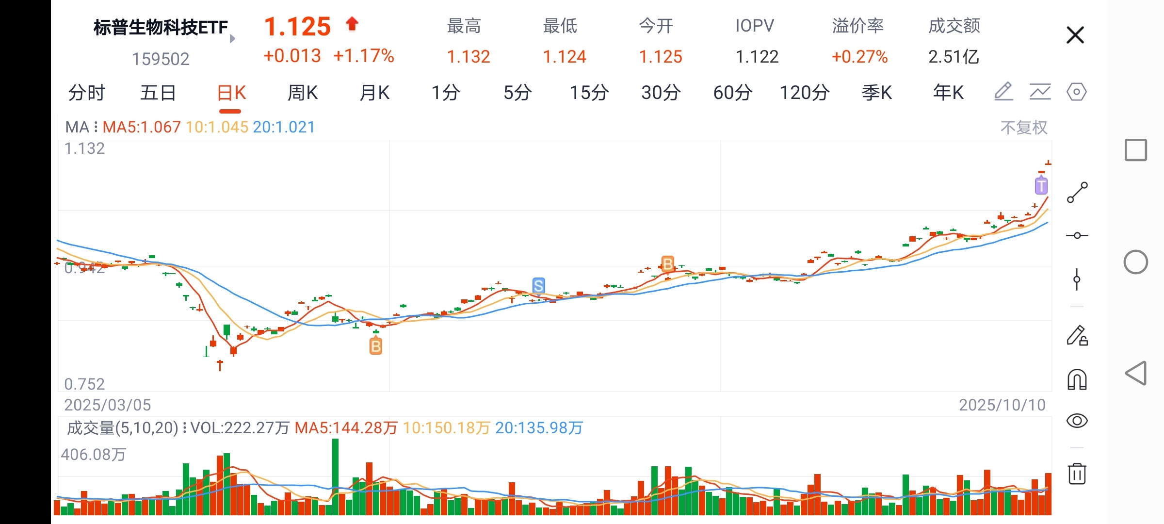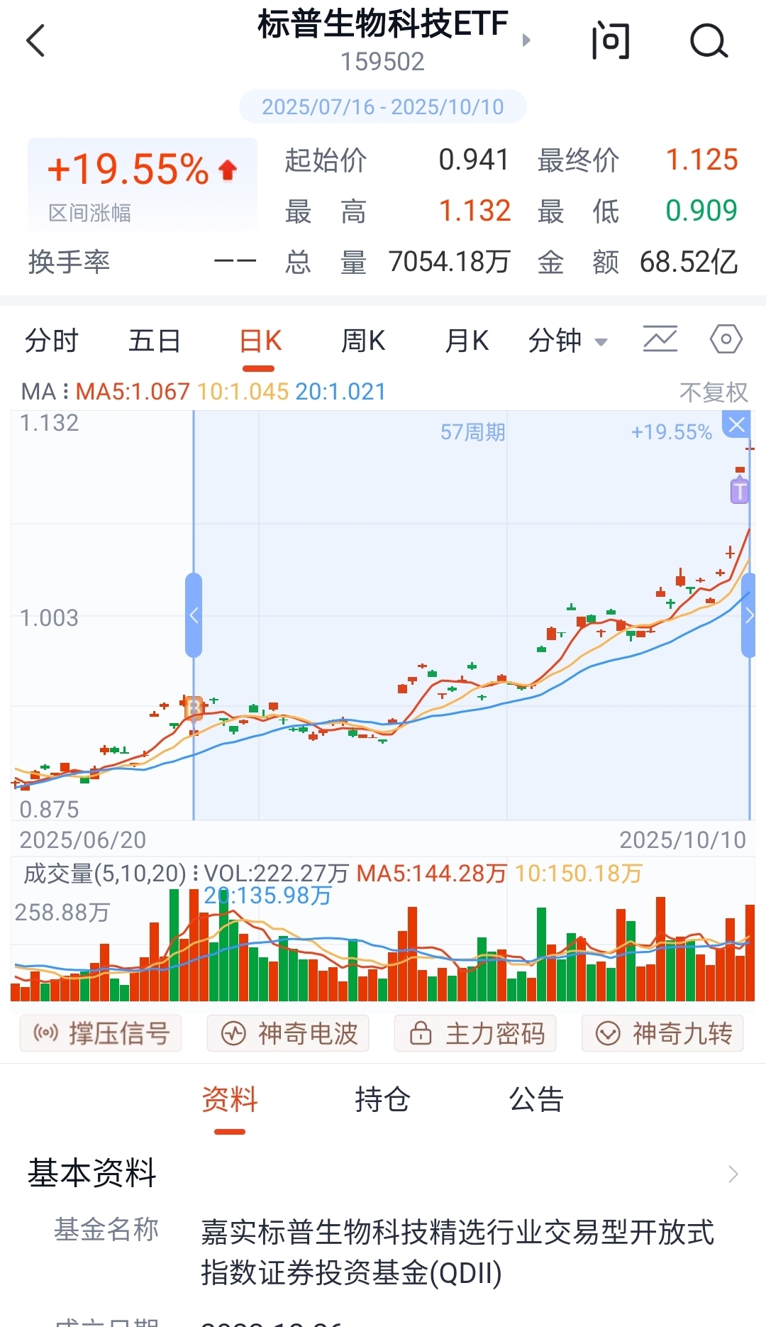 $黄金ETF(SH518880)$ $标普生物科技ETF(SZ159502)$ $纳指科技ETF(SZ159509)$