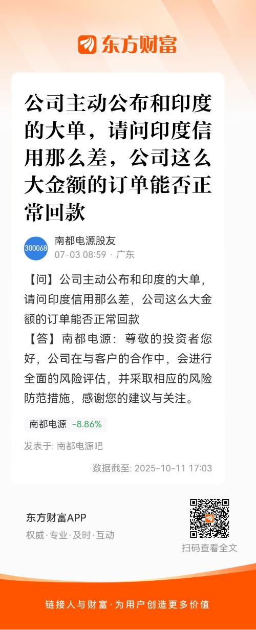 公司主动公布和印度的大单,请问印度信用那么差,公司这么大金额的订单能否正常回款