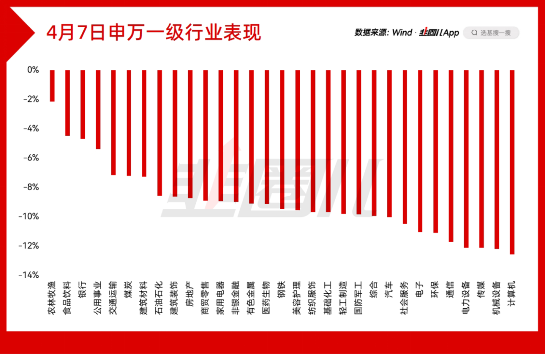 4月7日,A股最抗跌的行业是农林牧渔以及食品饮料方向。