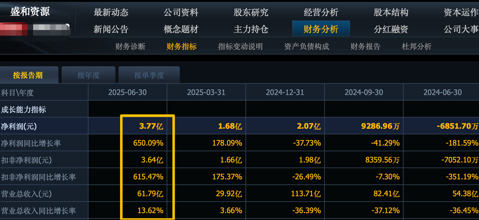 盛和资源的收入同比增长14%达到62亿元,净利润增长650%达3.77亿元。