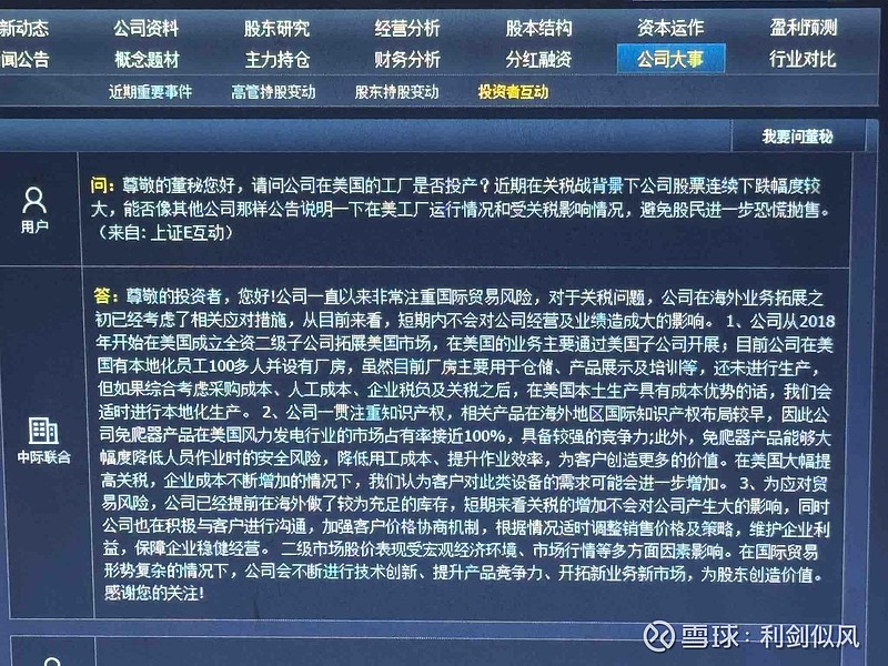 $中际联合(SH605305)$2025年 4月9日投资者互动平台问答:“美国大幅提高关税导致企业成本增加,预计有助公司产品销售”。果然:公司中报业绩增速创历史新高。现关税又风起对公司年报预计利好。