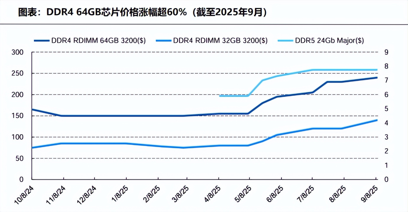 截止2025年9月,该存储芯片价格年内涨幅高达60%。正如公司此前承接其他存储芯片市场一样,未来,兆易创新在该领域的产品市场份额大概率会上升,公司业绩有望再次增厚。