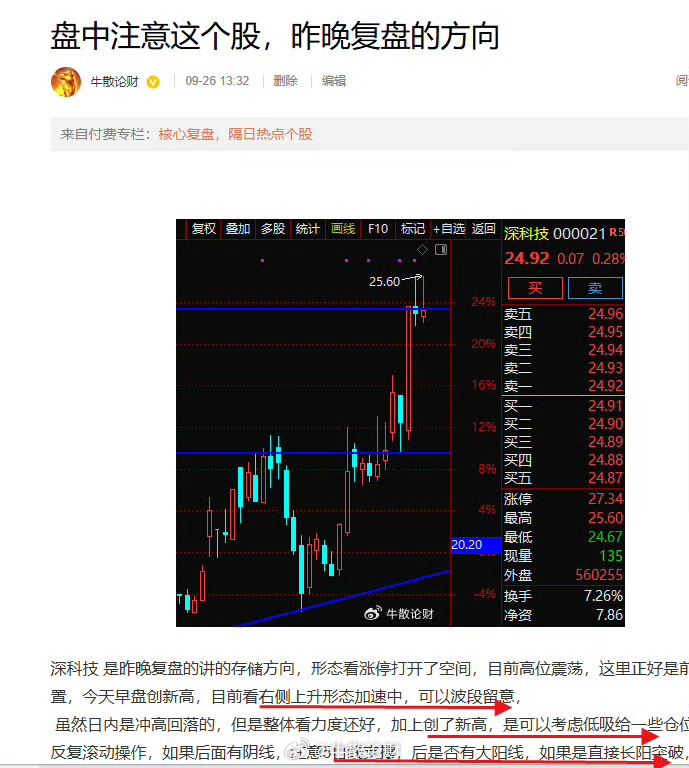 深科技前觅机筹,节前右侧识多头。两度跟庄突隘口,连板加速势难收。周五冲高逾七成,
