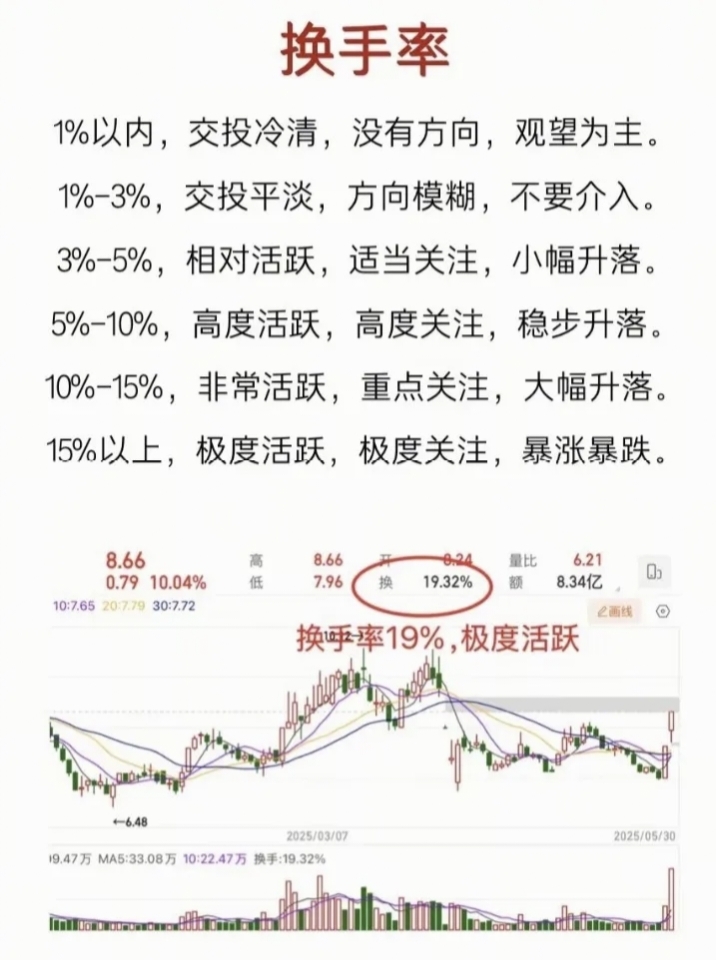 换手率最实用的口诀,也就这六句!1%以内,交投冷清,没有方向,观望为主。1%-3