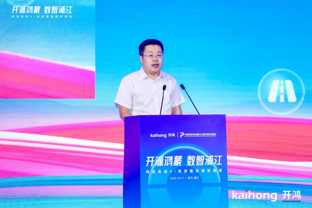 2025年10月11日,“浦江开源鸿蒙生态大会”在浙江浦江隆重举行。本次大会由浦江县人民政府与深圳开鸿数字产业发展有限公司(简称:深开鸿)联合主办,浙江开鸿智浦数字科技有限公司(简称:开鸿智浦)承办,以“开源鸿蒙数智浦江,构筑县域AI高质量发展新基座”为核心主题,紧扣浦江县域数字化发展实际需求,浙江省、市、县各级领导,行业专家学者,头部企业代表等多方力量,共商万物智联时代下开源鸿蒙产业生态的构建路径。会上,开源鸿蒙(金华)应用创新示范中心正式揭牌,标志着这一开源操作系统从技术理念到县域级规模化应用的关键跨越。