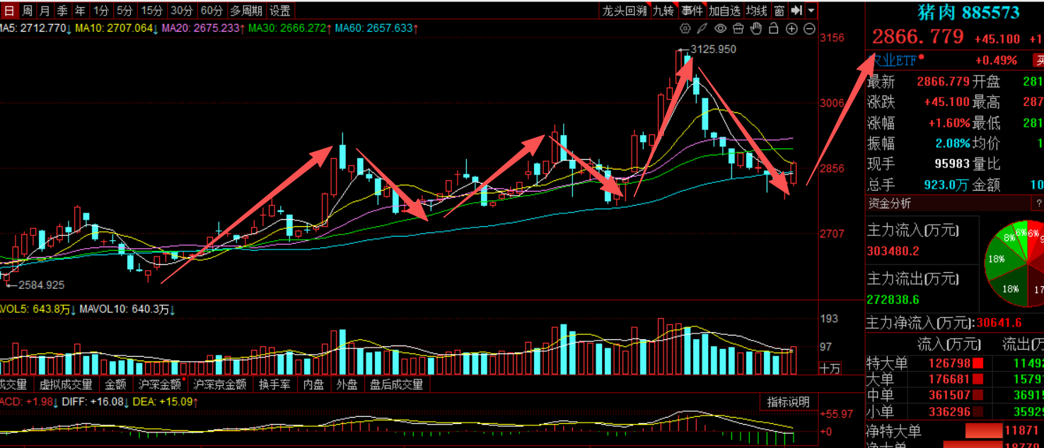 从板块上来看,目前还是标准的波段上涨趋势中的底部,目前刚拐头站上五日线,微幅放量,量能稳定,近期都是放量涨缩量跌的状态,标准的洗盘吸筹阶段,猪肉现货价格目前是历史低位,临近过年,随时有涨价预期,关税政策下,大姿金更愿意去一些防御型板块,很显然猪肉是个不错的选择。那猪肉板块又有哪些个股值得重点留意呢?