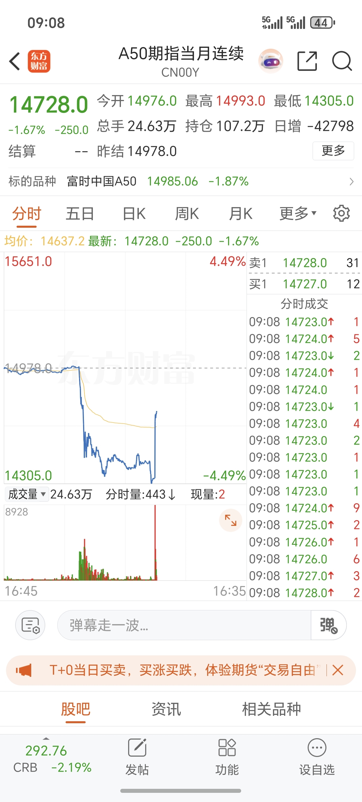 富时中国A50指数期货在上一交易日夜盘收跌4.26%的基础上高开,现仅跌1.67