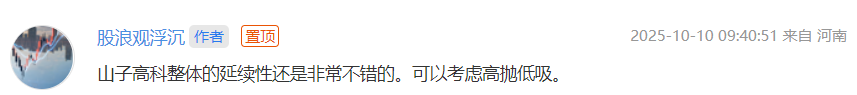 山子高科:山子高科通过一系列战略并购,已成功转型为新能源汽车与半导体双轮驱动的全球化科技集团。该股上周五早盘介入的逻辑很清晰,就是看好它的延续性。后续随着大盘调整,出现了一些抛压,但尾盘的拉升回撤,很可能是对近期高点的一次主动测试和清洗浮筹。这是强势股在快速上涨过程中的常见现象,目的是为了走得更远。今天的关键就在于观察盘中的接力情况。只要能稳住并出现转强迹象,它就很有希望继续向上拓展空间。