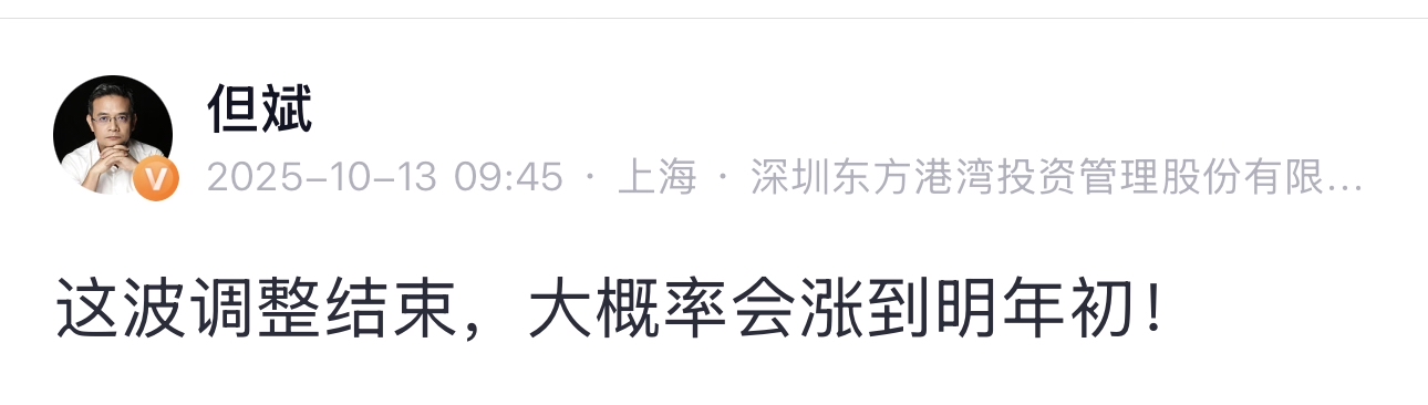 这波调整结束,大概率会涨到明年初!(私募大佬但斌2025年10月13日)