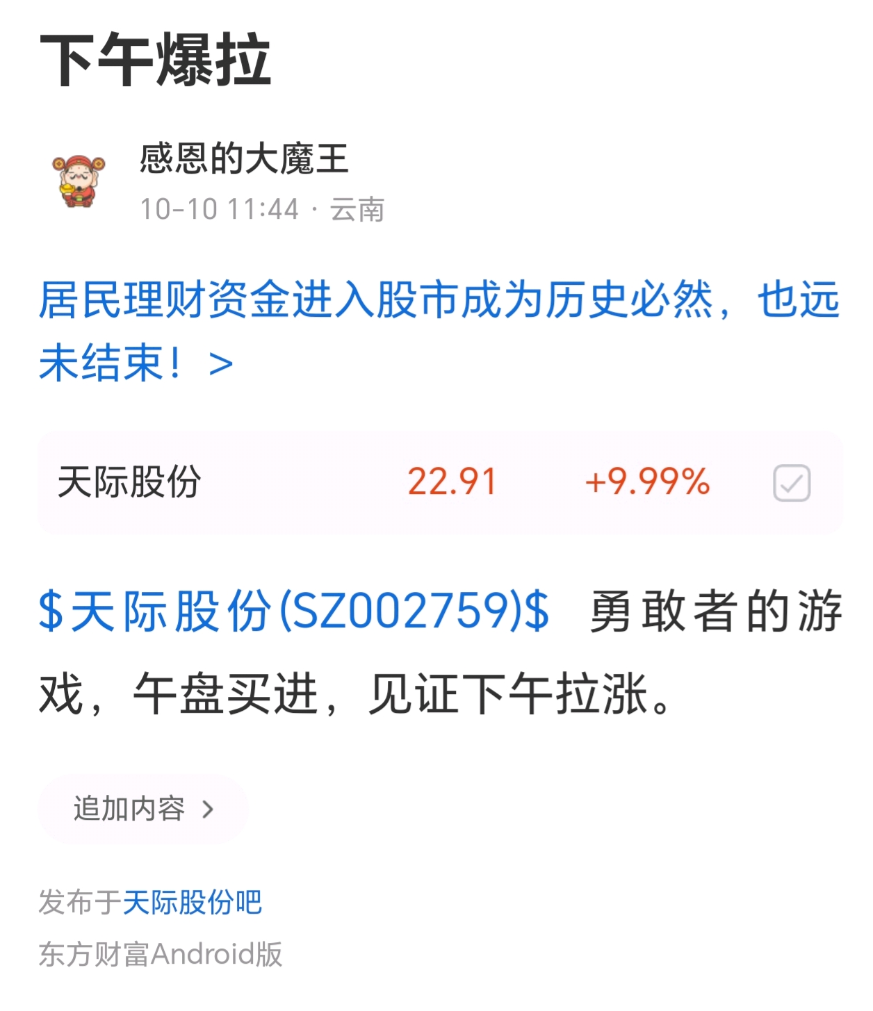 周五中午分享的天际股份没人相信,今天拉涨停打破质疑点个关注不迷路