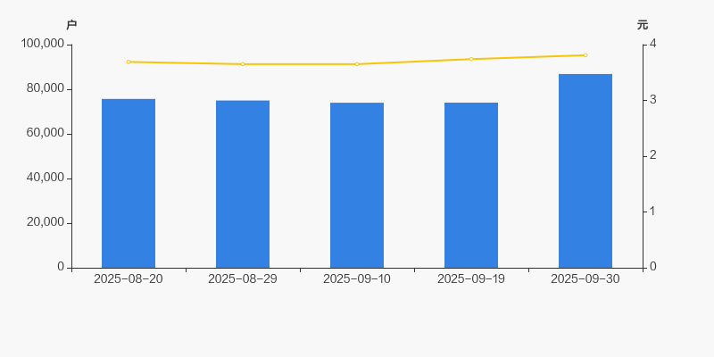 2025年8月20日至今,公司股东户数显著增长,区间涨幅为14.76%。2025年8月20日至2025年9月30日区间股价上涨3.25%。