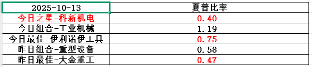 科新机电,基本面可圈可点,历史表现令人失望,目前估值中等,颇为鸡肋。整个工业机械行业历史表现不俗,波动也小,综合夏普比率极具竞争力,建议重点关注,首选伊利诺伊工具,其次豪迈科技。(注:夏普比率越高越好)