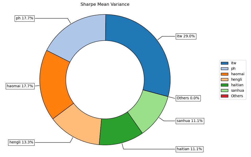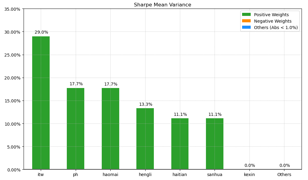 按最高夏普比率配置的话,系统给的权重为0,最高权重给了美股的伊利诺伊工具占比29.0%。(注:占比越高越好)