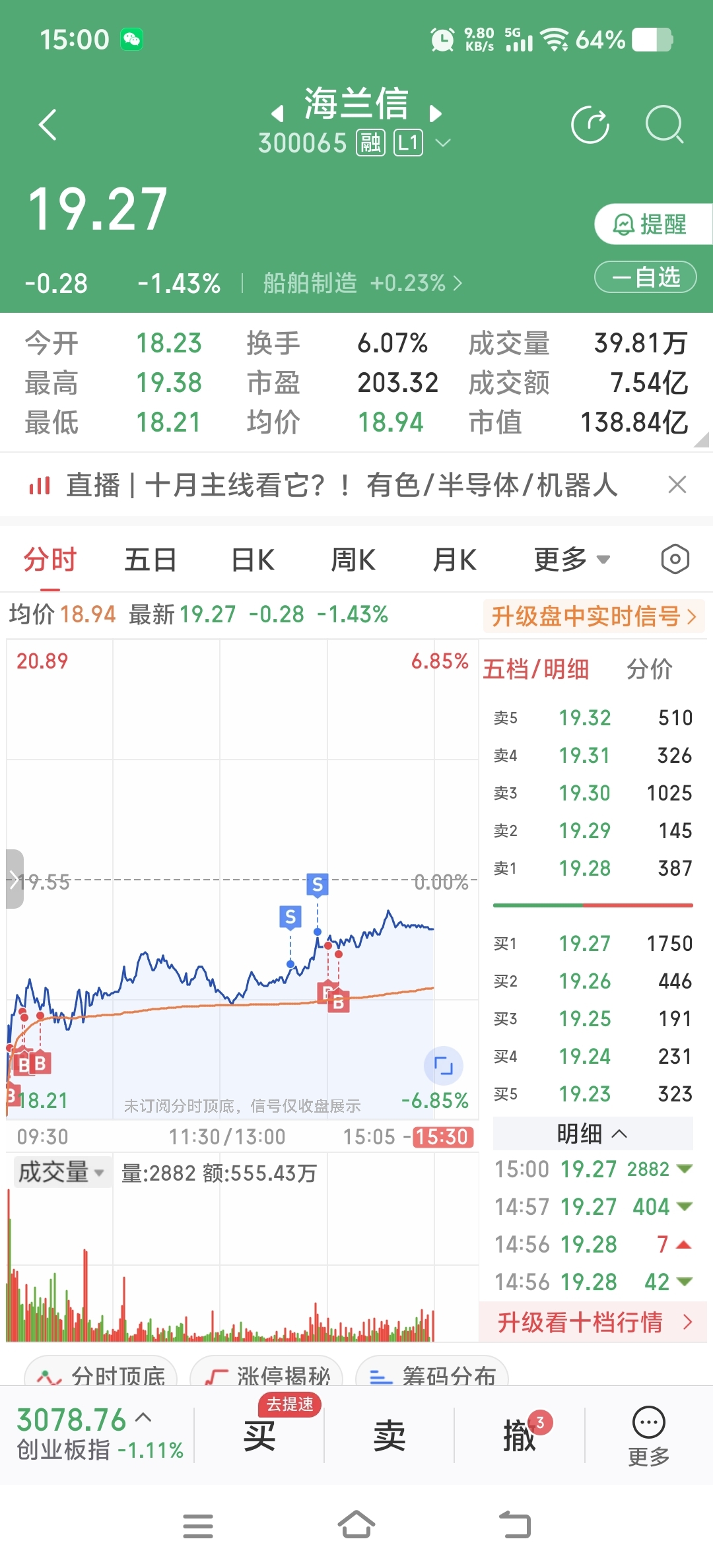 下午减仓1笔,回补18.93再接回。仓位降至3/5。