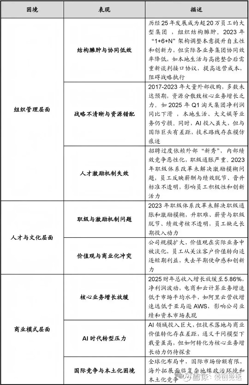 “大公司病”是阿里巴巴当前面临的最棘手问题之一,集团已从初创企业成长为拥有数十万员工的庞然大物,随之而来的是组织结构臃肿、决策流程冗长、部门壁垒森严等典型的大企业弊病。