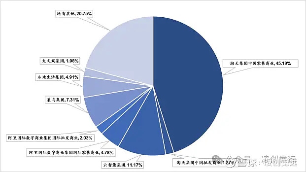 根据公司年报,阿里巴巴公司收入构成中,淘天集团占主要部分,2022-2024年均高于40%。
