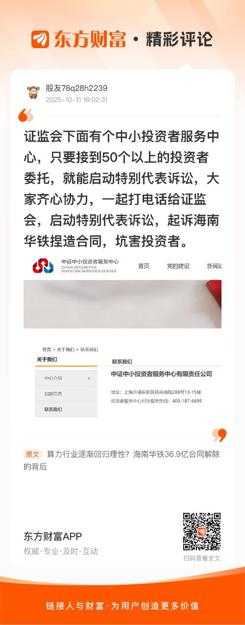此外,记者查阅当时的协议文本发现,其中明确约定:如因甲方(客户)原因导致款项未按时支付,每逾期一日需支付逾期金额0.05%的违约金;若甲方擅自解除协议,乙方有权要求甲方支付总金额20%的违约金。但条款末尾亦补充说明:“如本协议履行存在特殊情况的,经乙方同意,双方可另行协商确认。”至于是否是出于希冀未来围绕客户继续推进智算业务合作的目的,10月10日,记者多次致电海南华铁证券部了解相关情况,但电话始终无人接听。