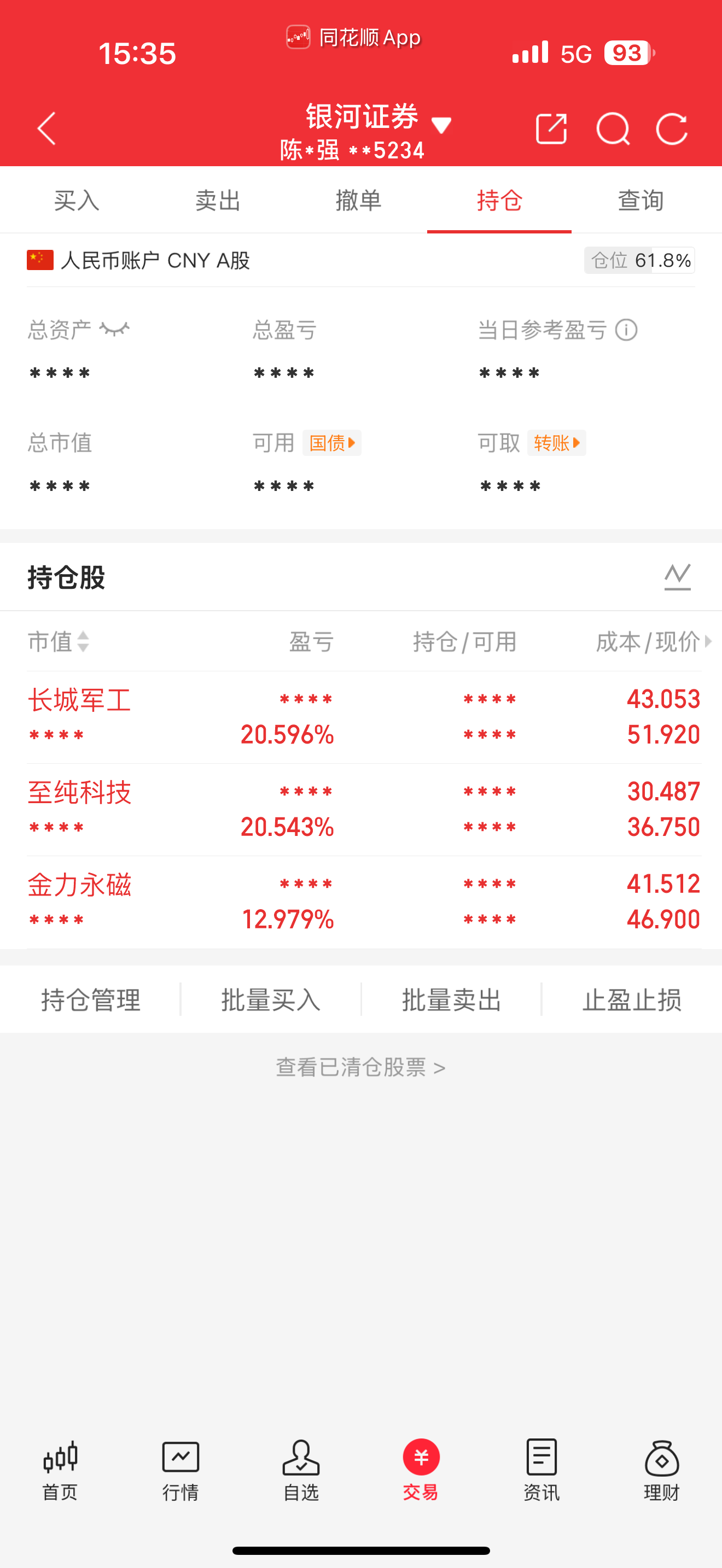 本人小陈,江西赣州人,77年,12年入大A现已是第13个年头,最开始小白跟着同事学习炒股,拿着自己13w瞒着老婆进入大A市场,13年半仓入酒鬼酒,14年全仓入量子高科、富瑞特装、海越股份,补仓20w还是全部套死,也算一夜白头砸锅卖铁!后逐渐看懂市场规律,不再每日盯着K线图,开始学习做长线,渐渐小赚!后面靠拿着易尚展示、乐凯新材这两只票才是实现质变的开始。2012年到2025年,从33w到现在实现翻倍,一倍两倍三倍.....周而复始,复利,看懂情绪周期,永远都是王道!