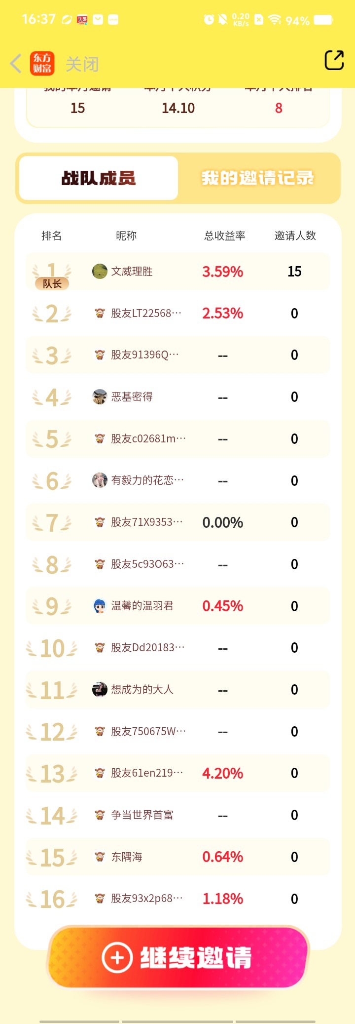邀股友组战队,争胜利分成果,望加入期待您!今天本队战果如下:#【有奖】第四届全国ETF菁英挑战赛重磅来袭!#