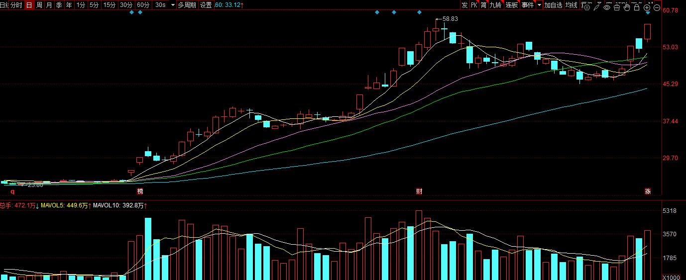 北方稀土600111:北方稀土在稀土管制加涨价的双重利好催化下,今天也是高开之后涨停收盘,3天2板,这延续了之前的上升趋势,说明市场对它的认可度非常高,盘中早盘稀土永磁板块利好明显,也是顺势介入,在两大利好的持续推动下,它的上升趋势有望继续延续。