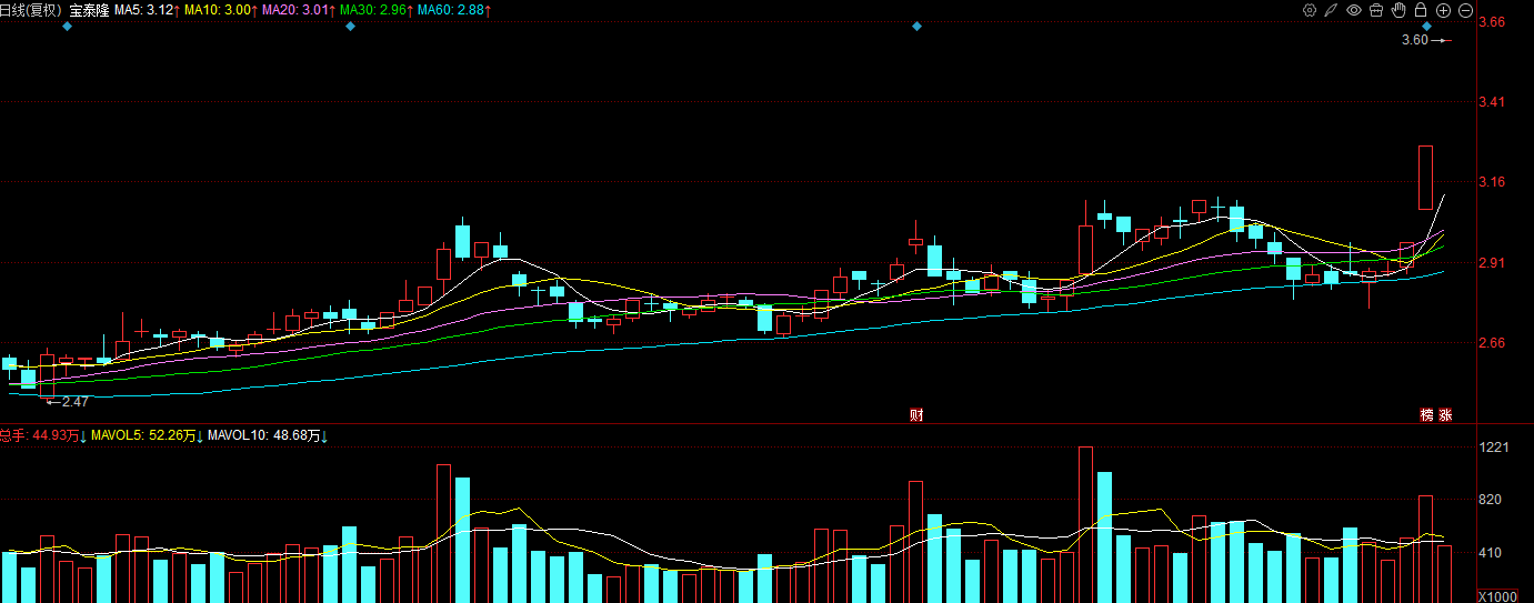 宝泰隆601011:宝泰隆是国内煤化工领域的重要企业,主营业务涵盖焦炭、甲醇、石墨电极等产品的生产与销售,拥有完整的煤化工产业链,在行业内具备一定的规模优势。该股今天的整体表现非常亮眼。它以缩量一字涨停的强势姿态,再次加速向上,成功拿下了两连板。这种缩量涨停的形态,说明筹码非常稳固,上方的空间瞬间就被打开了。它大概率还会继续沿着这个强势的轨道,继续向上拓展空间。值得持续关注。$宝泰隆(SH601011)$