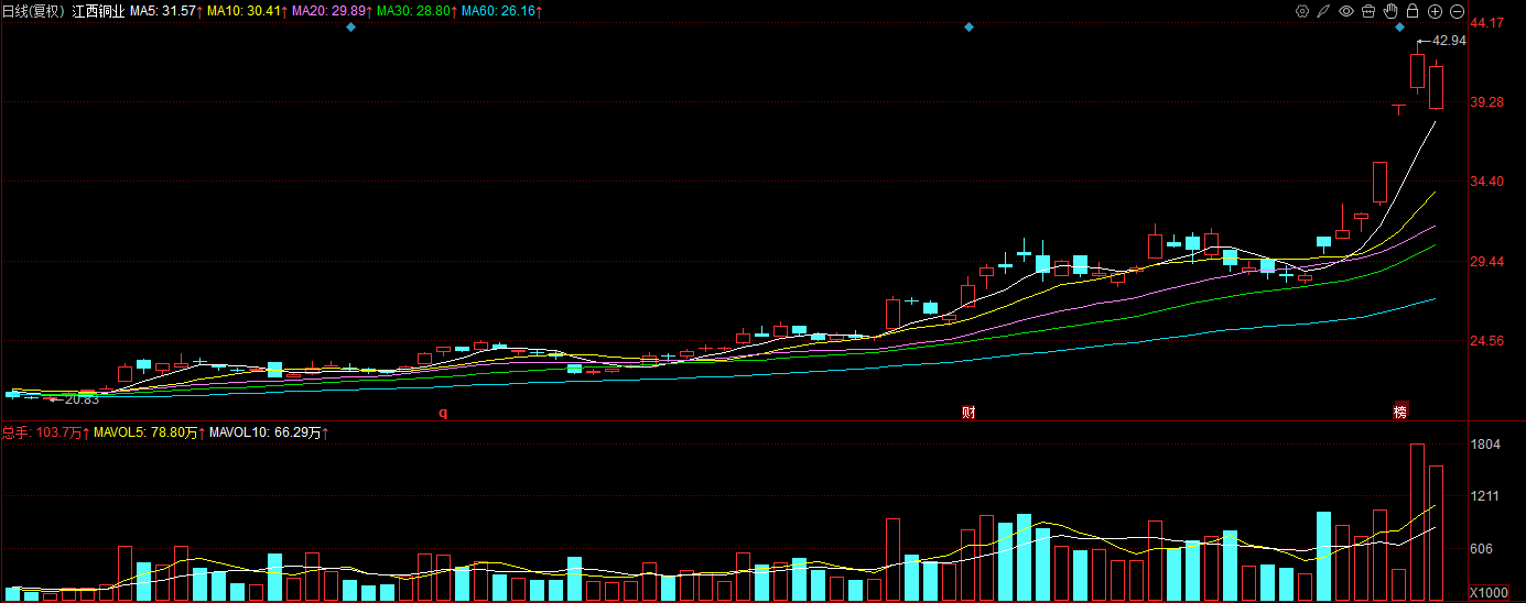 江西铜业600362:该股今天随板块出现了一定幅度的调整,早盘大幅低开后便进入区间震荡。不过,这并不意味着它的上升趋势已经逆转。目前,该股依旧运行在上升通道中,并且稳稳地站在了5日均线的支撑位上。虽然今天有所调整,但整体走势仍在可控范围内。后续还是有转强向上的预期。继续格局。