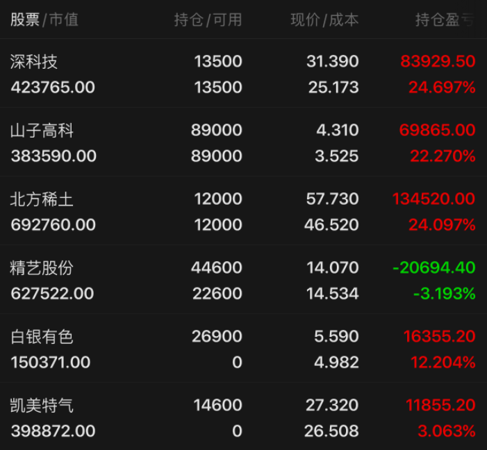 指数还是平稳落地了,真的大快人心!今天大盘开盘吓人一跳,三大指数都跳水,但后来慢慢拉回来,上证差点就翻红了,不过成交量缩了点,市场热度稍降。早盘芯片股挺猛,至纯科技一字涨停,新莱应材直接20厘米封板,东升之前看好的票表现不错。稀土也继续发威,包钢、银河磁体涨停,北方稀土两天涨了两板,东升的“大口肉”还在吃。其他像核电、固态电池、软件也都不错,合锻智能四连板,天际股份六天五个板,多氟多也涨停。软件这边榕基一字,中国软件也封了。农业、消费、军工、港口这些也轮着动了动。高位股里,蓝丰生化断板后还反包涨停,挺强;市场今天可以快速弱转强, 大伙对未来还是很有信心,短线情绪修复,又进入正轨了。