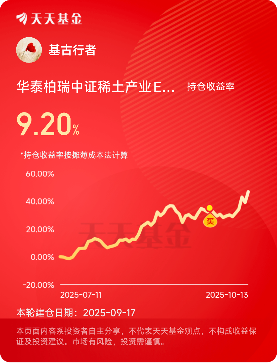 稀土不愧是工业维生素,战略地位没得说。华泰中证稀土今天涨超4%,一年下来收益78%,真香。$华泰柏瑞中证稀土产业ETF发起式联接C$ #晒收益# #券商把脉:冲击小于4月 黄金坑再现?# #稀土价格暴涨37%!稀土板块狂飙#