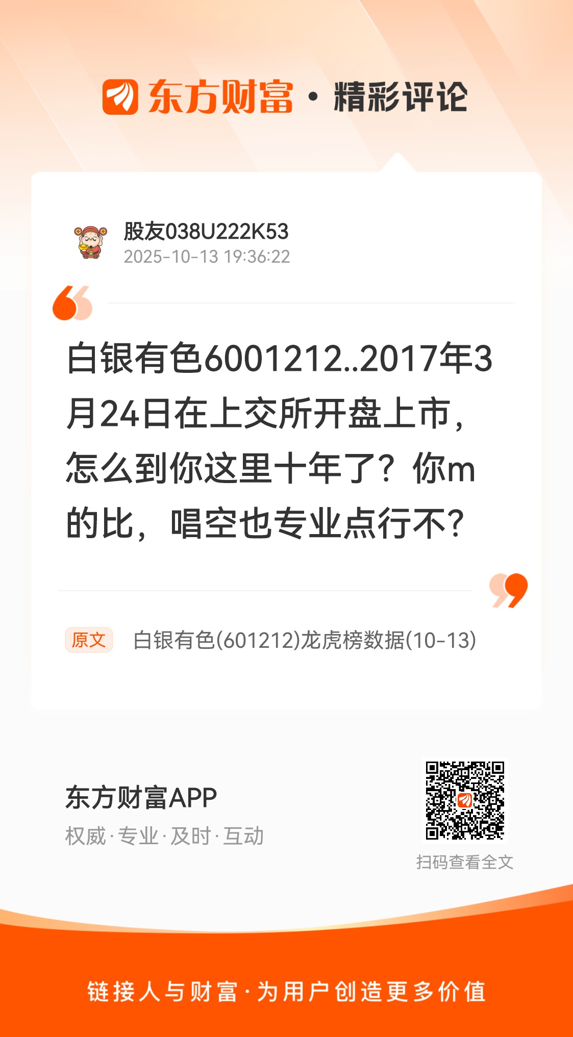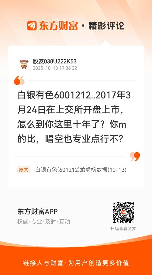 温馨提示: 1.根据《证券法》规定,禁止编造、传播虚假信息或者误导性信息,扰乱证券市场;2.用户在本社区发表的所有资料、言论等仅代表个人观点,与本网站立场无关,不对您构成任何投资建议。用户应基于自己的独立判断,自行决定证券投资并承担相应风险。《东方财富社区管理规定》