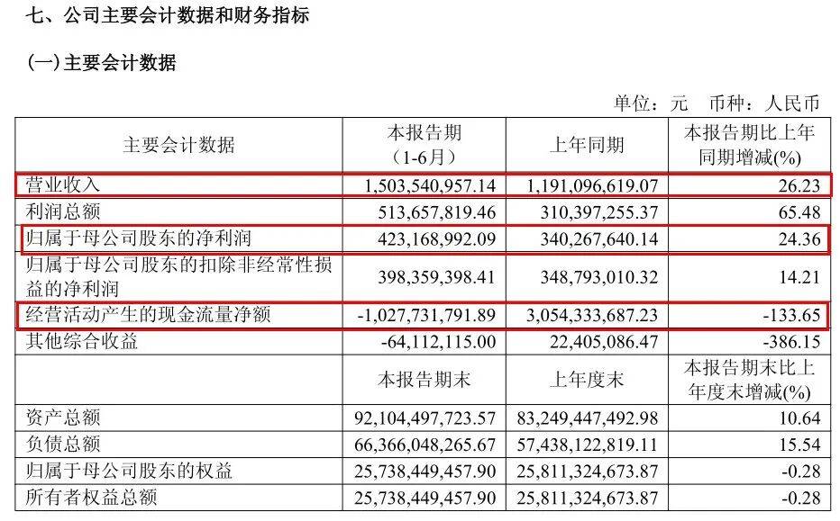 报告显示,2025年上半年该公司实现营业收入15.04亿元,同比增加26.23%;归母净利润4.23亿元,同比增加24.36%。