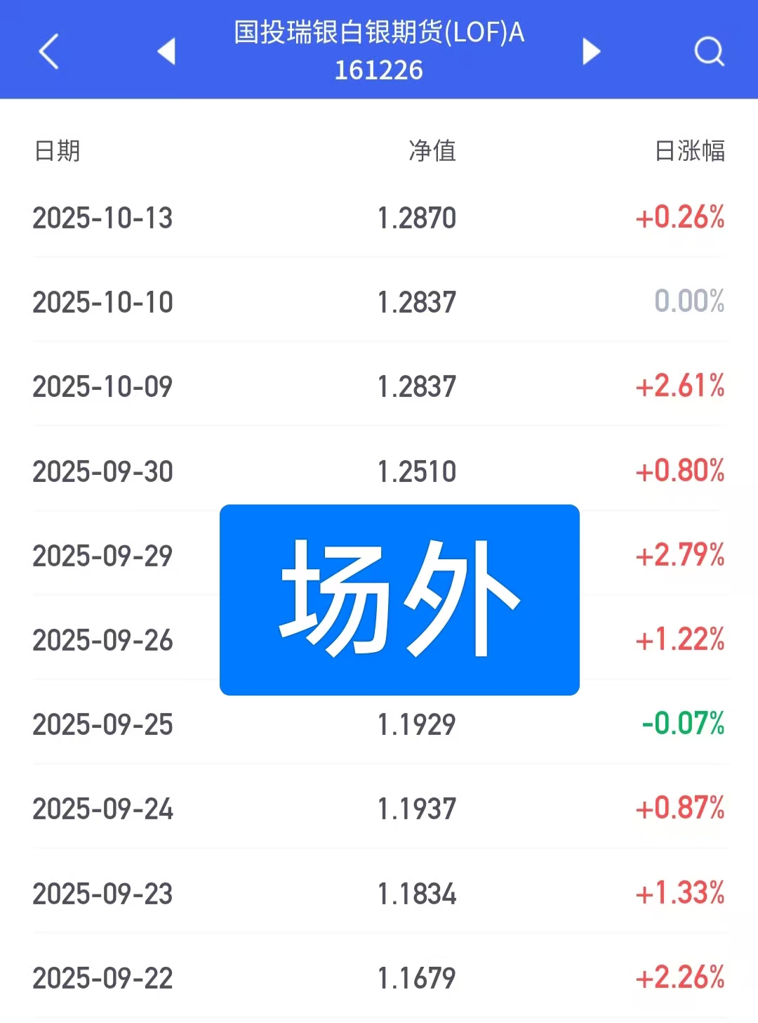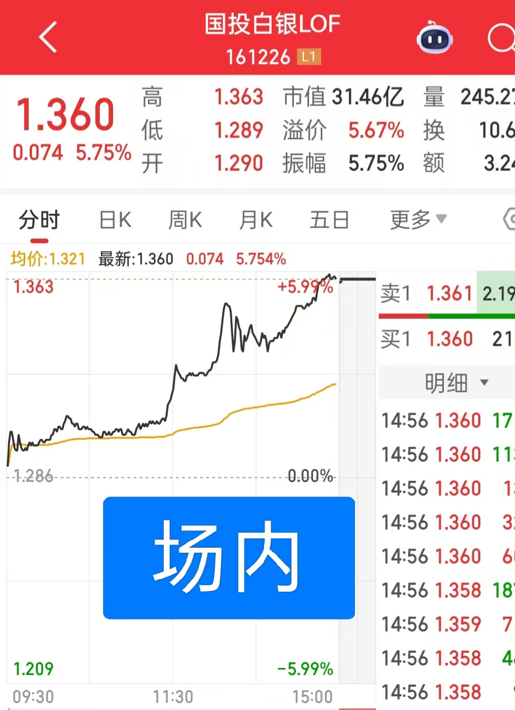 $国投白银LOF(SZ161226)$ 场内大涨5.7%,0.2%是场外,都什么年代了还有人玩场外?场内你不玩非要去玩场外赚不到怪谁呢,很多人分不清场内场外都是同一只基同一个代码,3点钟就说了场外估值0.2%很多人还不相信,$沪银主连(SHFE|agm)$