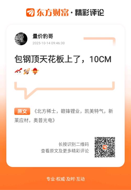//@量价豹哥 :包钢顶天花板上了,10CM