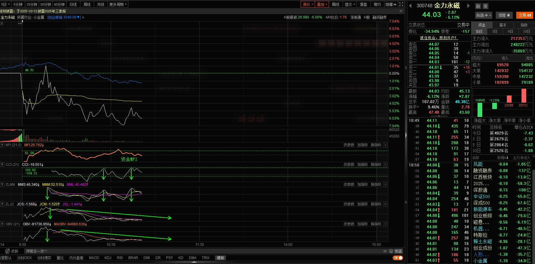 刚才送的是大盘分时图,现送金力永磁分时图: