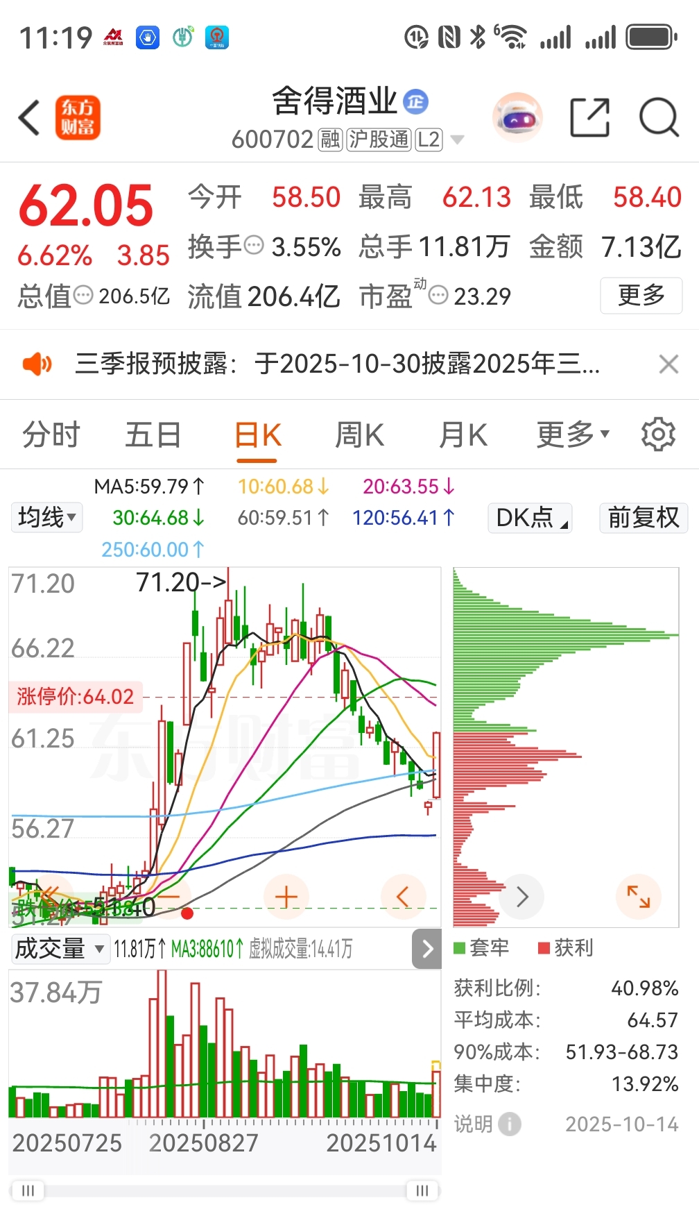 舍得酒业坚持了这么久终于迎来大反弹