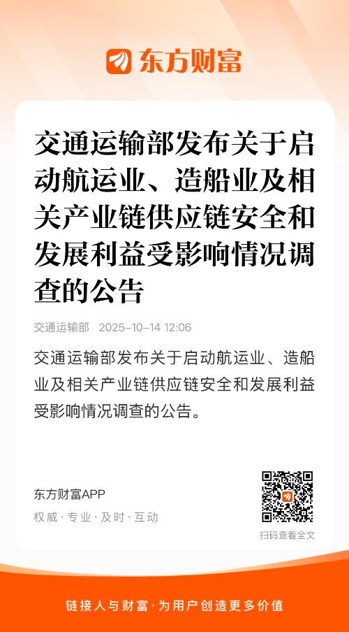 交通运输部关于启动航运业、造船业及相关产业链供应链安全和发展利益受影响情况调查的公告