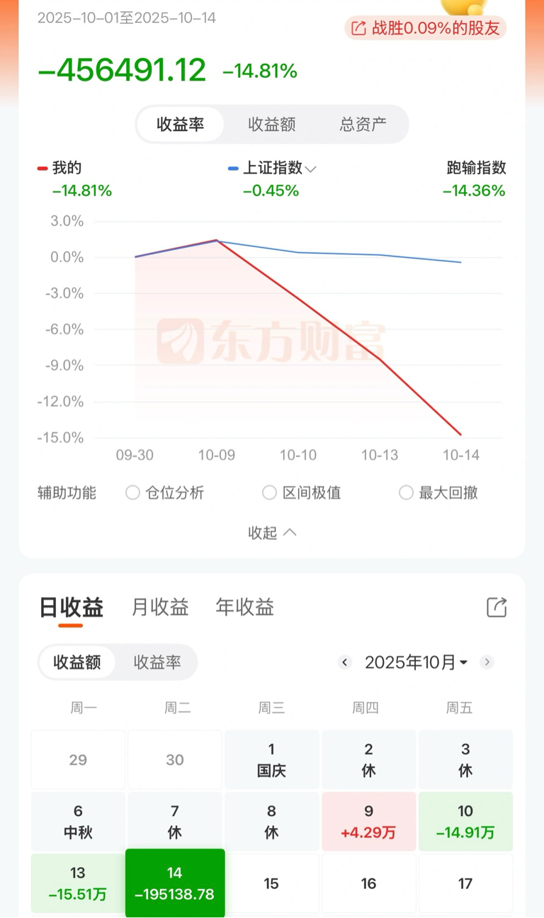 知道10月10日要开始洗盘,9号先出来大部分资金,再抄底回去,一路补一路跌,跌跌不休。