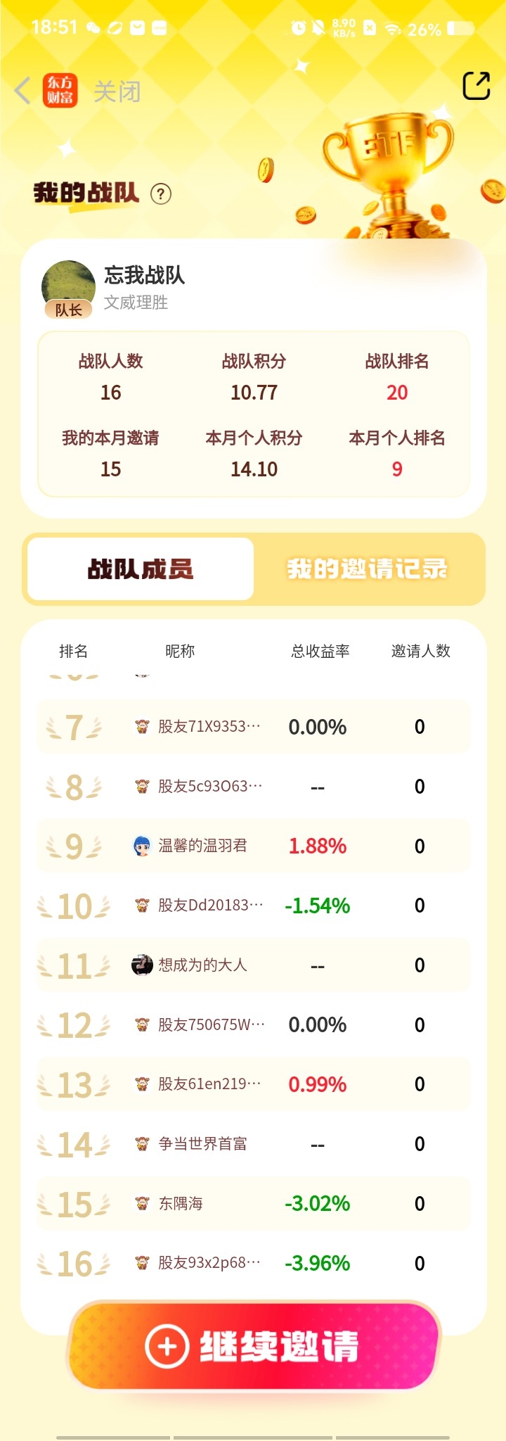 邀股友组战队,争胜利分成果,望加入期待您!今天本队战果如下:#【有奖】第四届全国ETF菁英挑战赛重磅来袭!#