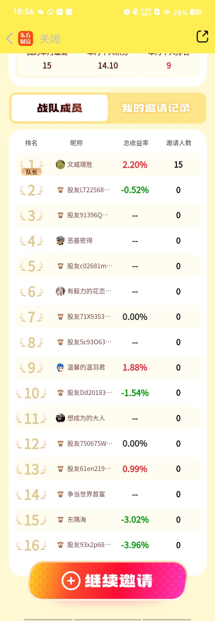 邀股友组战队,争胜利分成果,望加入期待您!邀股友组战队,共努力争胜利,分成果享喜悦,期待您快加入。本队战果如下:#【有奖】第四届全国ETF菁英挑战赛重磅来袭!#