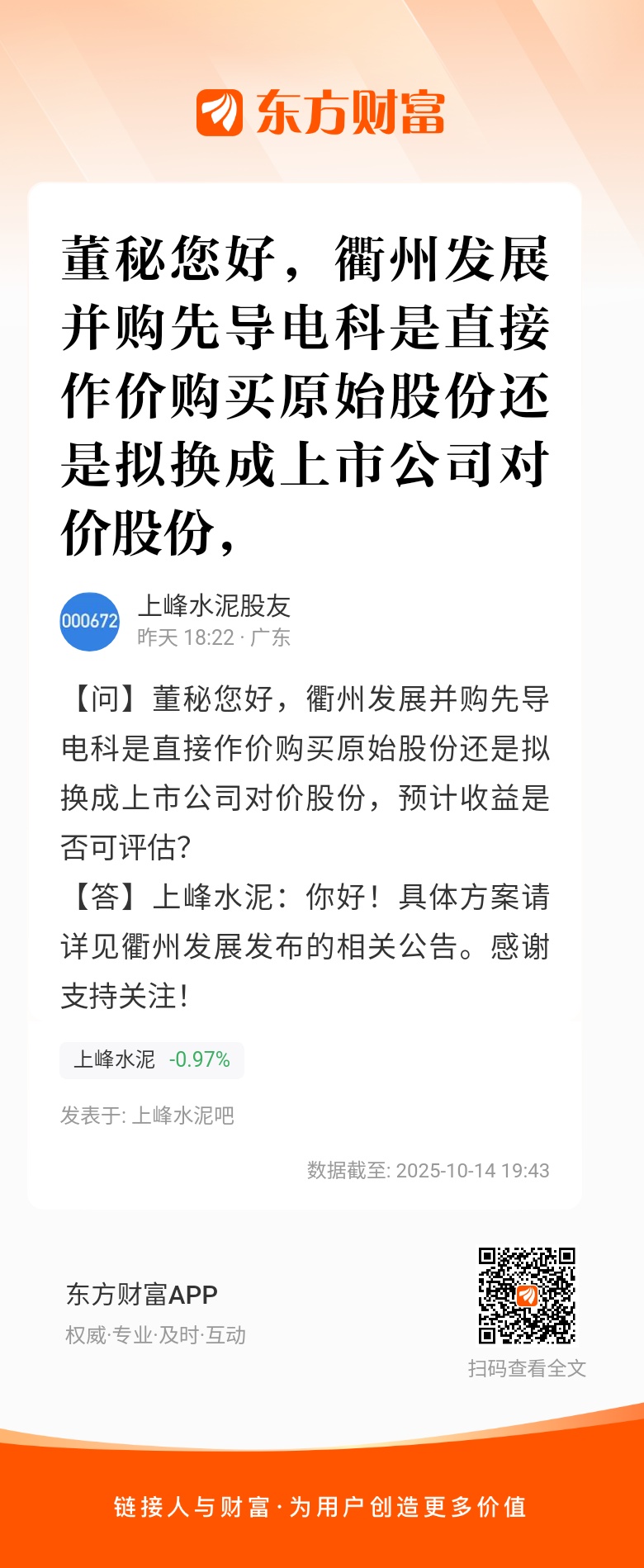 董秘您好,衢州发展并购先导电科是直接作价购买原始股份还是拟换成上市公司对价股份,预计收益是否可评估?