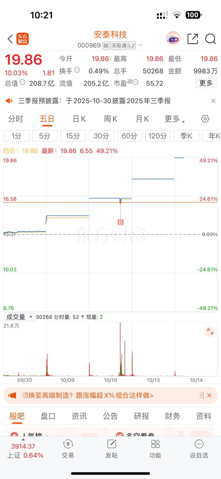 #收盘点评# 安泰科技继续持有,明天安泰是挑战的一天,今天炸板的个股太多的,首版,1进2,2进3都不好做,趋势票大杀跌,山子开盘关注了一下,还是选择打了王子,结果被5家机构收割了,我还是看多,本月站稳4000点,不过之前觉得是主升,目前来看要震荡调整了,注意风险,踩错节奏万劫不复。
