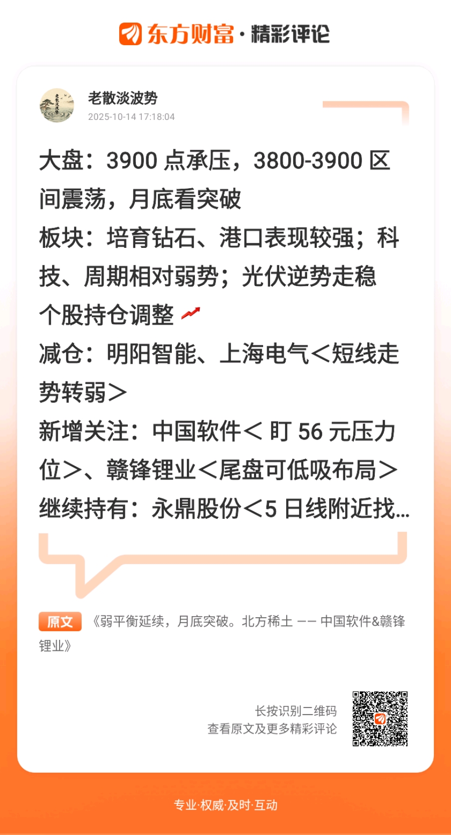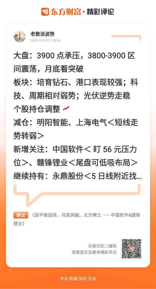 可看回早评 2025年10月14日 00:52 可点>>> 风暴前的宁静,主力已经开始偷跑!北方稀土、中国软件、赣锋锂业