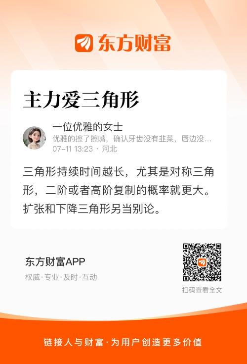 三角形持续时间越长,尤其是对称三角形,二阶或者高阶复制的概率就更大。扩张和下降三角形另当别论。