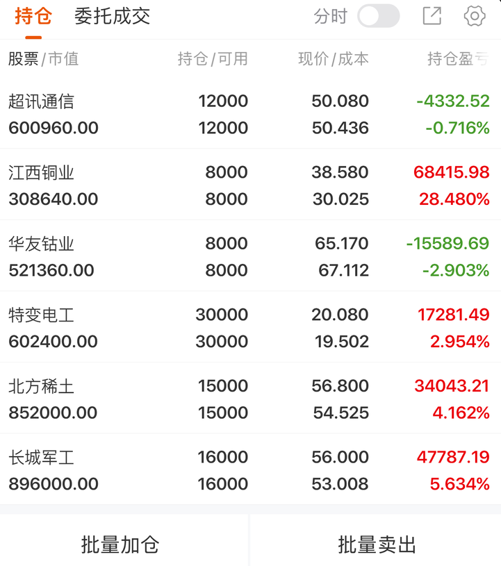 近期持仓记录: