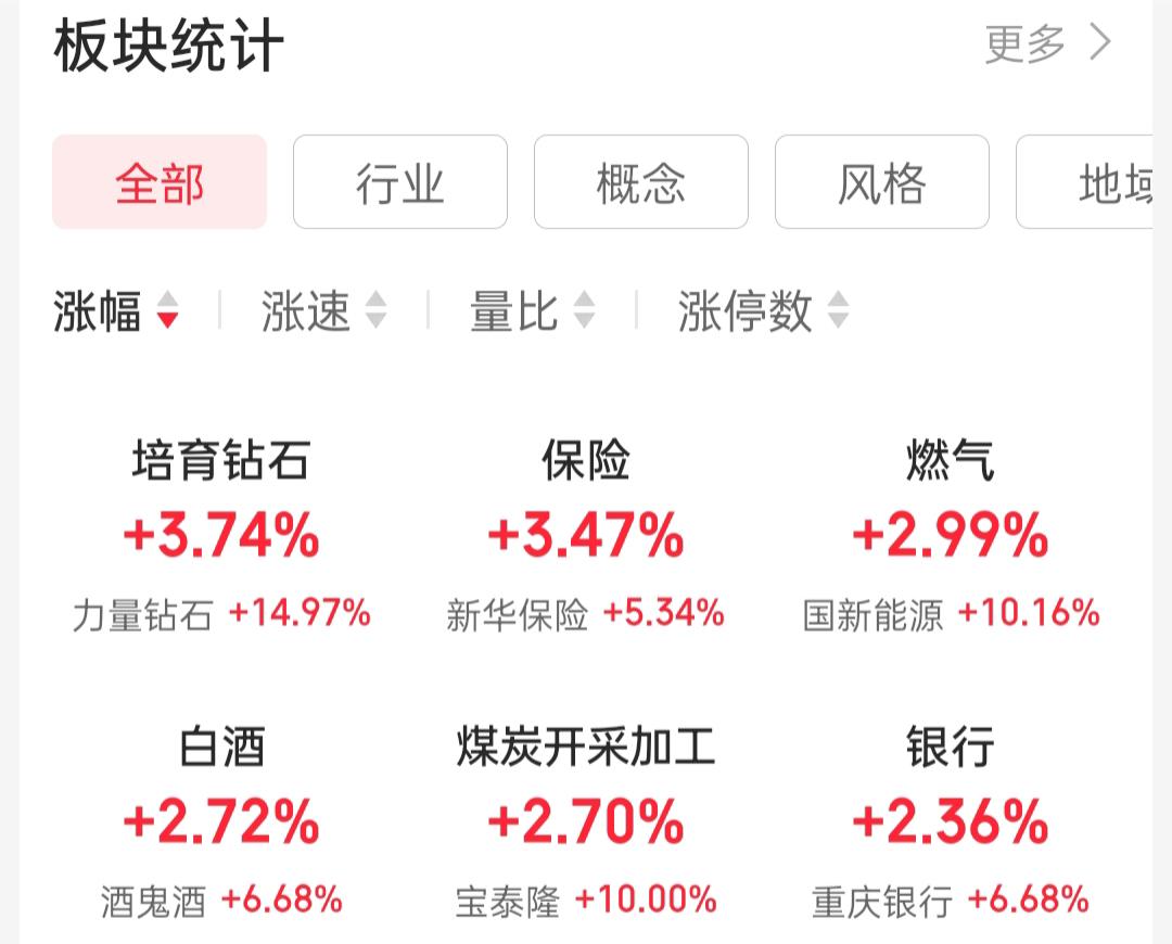 在板块方面,昨日培育钻石、保险、燃气、白酒、煤炭开采、银行几个板块比较活跃,表现较好。从板块表现看,前期活跃板块今天集体缺席涨幅榜,姿金在向前期滞涨板块转移。这两日板块轮动明显加快了,把握起来难度更大。