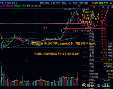 阿里难得回踩这么大,目前在154附近获得支撑,短线可以继续多,后面中长线关注14