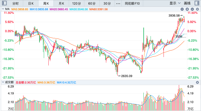 从昨天的股指走势来看,出现高开低走,全天震荡下行,毫无抵抗之力。资金跟周一的走势完全相反,目前来看,大的结构形态遭受到了破坏,但是目前上证指数在3850的位置横盘震荡整理,成交量保持在2万亿,昨天上涨家数超过了2000家,所以目前来说只剩下零星的低位低价类型的个股机会。其他的基本上都出现了调整的情况。