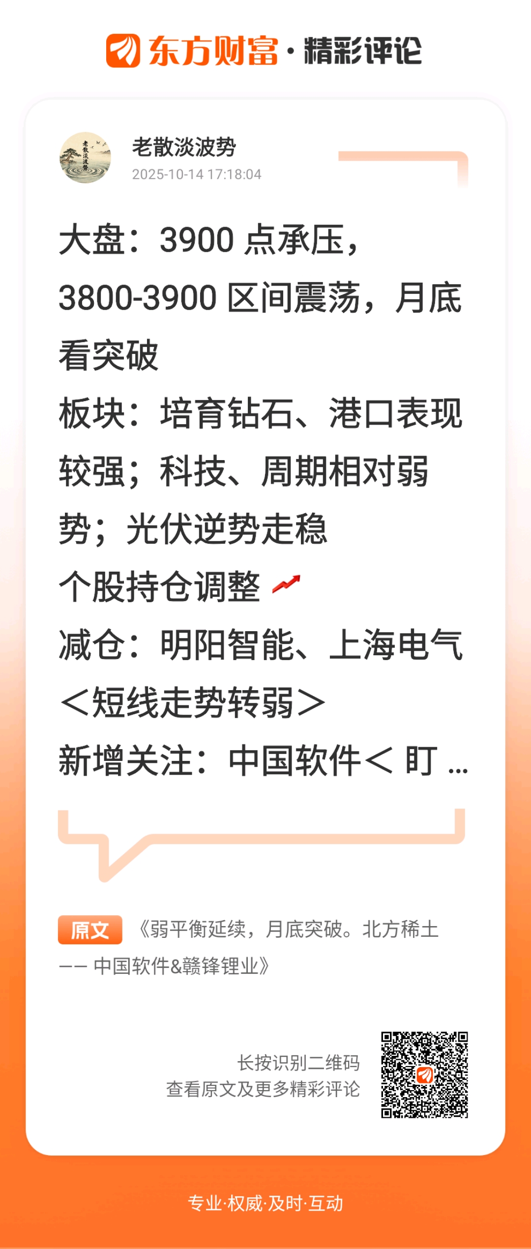 可看回早评 2025年10月14日 00:52 可点>>> 风暴前的宁静,主力已经开始偷跑!北方稀土、中国软件、赣锋锂业